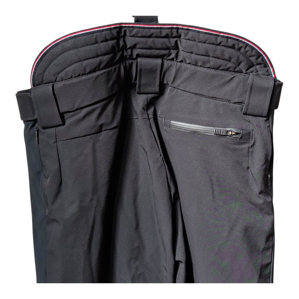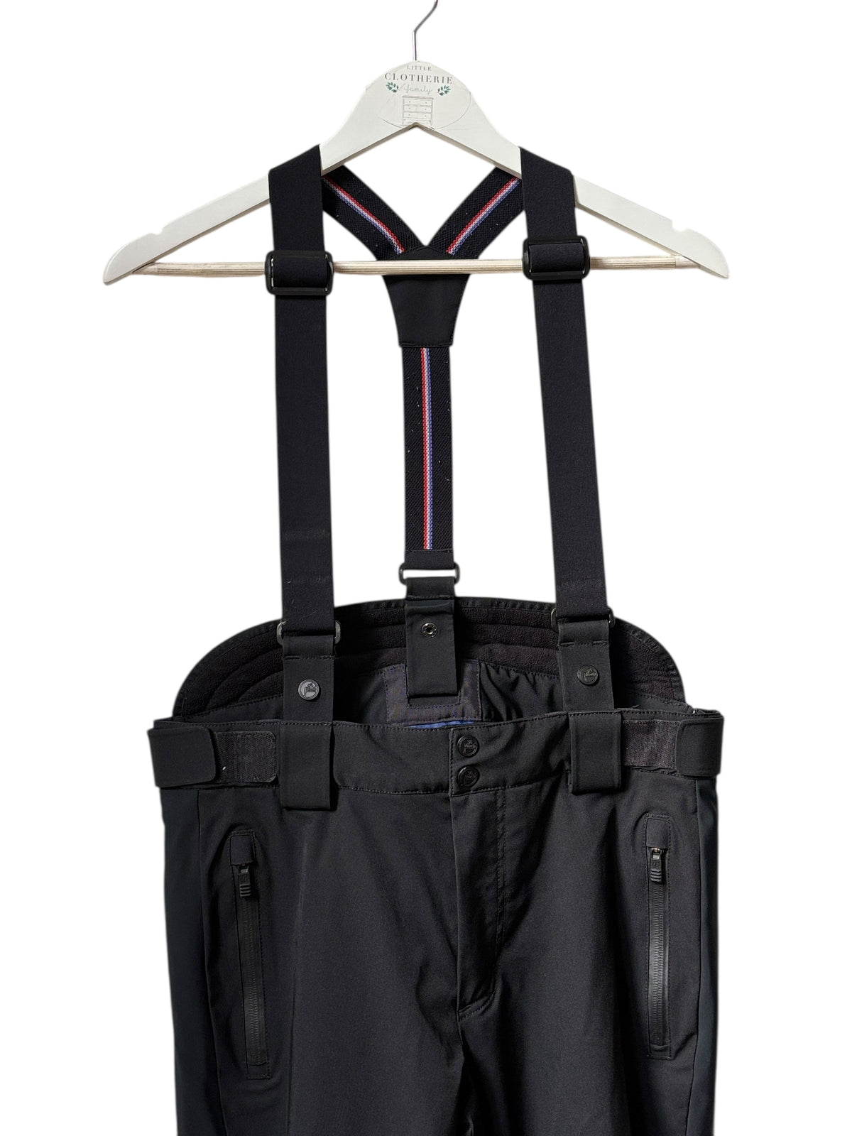 Pantalon noir à bretelles amovible, modele Ranger, matière extensible en sergé bi-stretch semi-mate et déperlante avec membrane Perfortex, empiècements en softshell sur le côté de la jambe, coupe droite, principales coutures soudées, bretelles amovibles et ajustables, taille ajustable avec pattes de serrrage et velcro, empiècement rehaussé en mousse au dos, poches mains et dos, entièrement doublé, renfort bas des jambes, système d'aération intérieur des jambes, jupe Pare-neiges, isolation thermique,