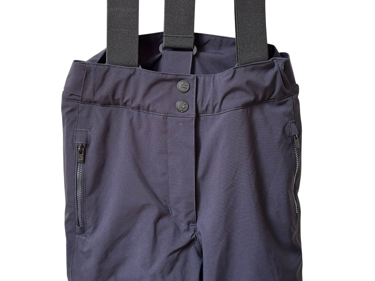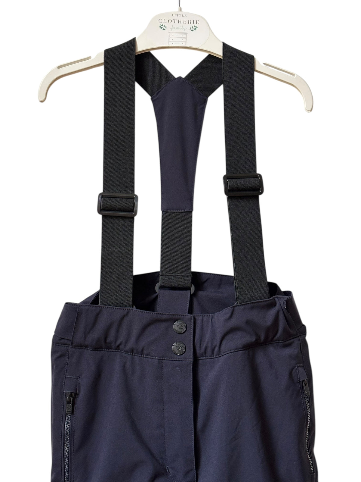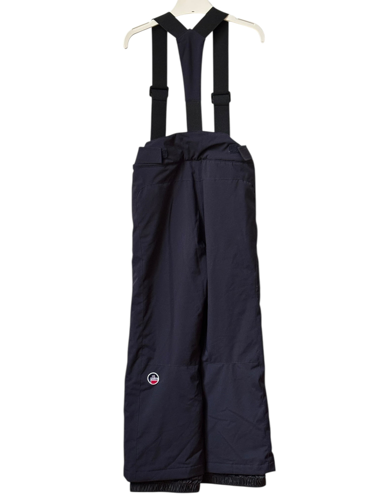 Pantalon de ski bleu marine  issu d'une collection recente, coupe droite mais pas large, à bretelles réglables, entièrement doublé polaire tout doux, poches fermées, passants ceinture, dos légèrement montant
